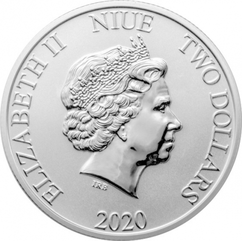 Il rovescio della moneta raffigura Topolino e Pluto che si abbracciano. In basso l'indicazione del metallo, titolo e logo Disney. Il diritto mostra il ritratto della Regina Elisabetta II e le iscrizioni "DUE DOLLARI", "ELIZABETH II", "2020" e "NIUE".