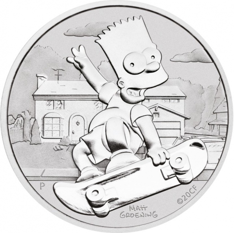 La seconda moneta della serie dei Simpson è dedicata a Bart, il figlio maggiore della famiglia. La moneta lo raffigura in sella al suo skateboard davanti alla casa di famiglia dei Simpson. In basso è visibile la firma del disegnatore Matt Groening. Il diritto raffigura la regina Elisabetta II, con la scritta "QUEEN ELIZABETH II 1 1oz 9999 Ag 2020 TUVALU 1 DOLLAR".