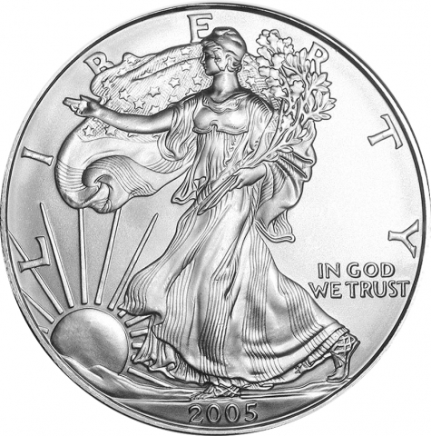 Ventesima emissione della serie statunitense "American Eagle" e punto di riferimento per il mercato delle monete bullion di tutto il mondo. Sul dritto è possibile osservare un adattamento del disegno "Walking Liberty" di Adolph A. Weinman, originariamente utilizzato per il Walking Liberty Half Dollar, in esergo la data 2005.