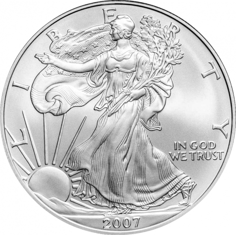 Ventiduesima emissione della serie statunitense "American Eagle" e punto di riferimento per il mercato delle monete bullion di tutto il mondo. Sul dritto è possibile osservare un adattamento del disegno "Walking Liberty" di Adolph A. Weinman, originariamente utilizzato per il Walking Liberty Half Dollar, in esergo la data 2007.