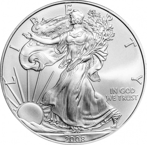 Ventitreesima emissione della serie statunitense "American Eagle" e punto di riferimento per il mercato delle monete bullion di tutto il mondo. Sul dritto è possibile osservare un adattamento del disegno "Walking Liberty" di Adolph A. Weinman, originariamente utilizzato per il Walking Liberty Half Dollar, in esergo la data 2008.