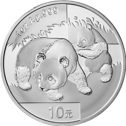 Ventiquattresima emissione della serie Panda. La moneta del 2008 mostra un panda gigante con il suo cucciolo. La serie di monete cinesi denominata Panda inizia nel 1983. Nei primi due anni prodotte nella sola versione proof, successivamente anche nella versione Bullion FDC, queste splendide monete mostrano sempre sul rovescio il simpatico animale nel suo habitat naturale. Da notare che fino al 2015 tutte le monete cinesi erano organizzate secondo l'oncia, multipli e frazioni, nel 2016 si è passati al grammo. Il dritto raffigura un’immagine del Tempio del Cielo a Pechino e l'anno di emissione.