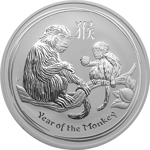 La nona emissione della serie "Lunar II" è dedicata al segno zodiacale della Scimmia. La moneta mostra sul rovescio una scimmia adulta con un cucciolo che tiene in mano una pesca.