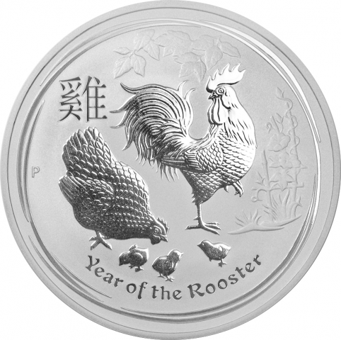 La decima emissione della serie "Lunar II" è dedicata al segno zodiacale del Gallo. La moneta mostra sul rovescio una gallo, una gallina e 3 pulcini. In alto a sinistra il carattere cinese corripondente al segno ed in basso la denominazione.