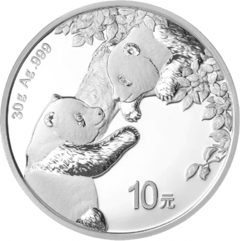 Trentasettesima emissione della serie Panda. La moneta del 2023 mostra un panda gigante su un albero nell'intento di avvicinarsi più in alto al suo cucciolo. La serie di monete cinesi denominata Panda inizia nel 1983. Nei primi due anni prodotte nella sola versione proof, successivamente anche nella versione Bullion FDC, queste splendide monete mostrano sempre sul rovescio il simpatico animale nel suo habitat naturale. Da notare che fino al 2015 tutte le monete cinesi erano organizzate secondo l'oncia, multipli e frazioni, nel 2016 si è passati al grammo. Il dritto raffigura un’immagine del Tempio del Cielo a Pechino e l'anno di emissione.