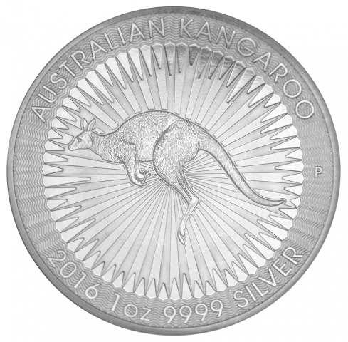 Seconda emissione per la serie Australian Silver Kangaroo. Queste monete del 2016 mostrano il canguro in primo piano mentre il campo della moneta è riempito da linee radiali a raggiera.