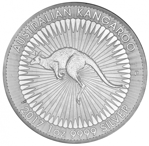 Terza emissione per la serie Australian Silver Kangaroo. Queste monete del 2017 mostrano il canguro in primo piano mentre il campo della moneta è riempito da linee radiali a raggiera.