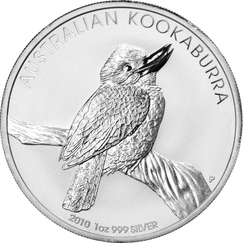 Ventunesima emissione della serie kookaburra. In questa moneta datata 2010 è visibile un uccello kookaburra appollaiato appollaiato su un ramo d'albero. Nel campo sinistro, una piccola lettera P è il marchio di zecca della Perth Mint. L'animale conosciuto con il nome di "Laughing Hans" o "Hunter Liest", vive principalmente nella parte orientale dell'Australia e ha un caratteristico organo vocale. Il nome Kookaburra è una modifica del termine aborigeno australiano "guuguubarra", che evoca il richiamo del martin pescatore. La scritta AUSTRALIAN KOOKABURRA si curva attorno al bordo superiore, mentre la data, il peso e la purezza della moneta si possono vedere alla base. Il dritto raffigura l'effigie della regina Elisabetta II.
