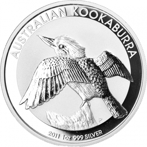 Ventiduesima emissione della serie kookaburra. In questa moneta datata 2011 è visibile un uccello kookaburra appollaiato su un ceppo d'albero, con le ali spiegate. Nel campo sinistro, una piccola lettera P è il marchio di zecca della Perth Mint. L'animale conosciuto con il nome di "Laughing Hans" o "Hunter Liest", vive principalmente nella parte orientale dell'Australia e ha un caratteristico organo vocale. Il nome Kookaburra è una modifica del termine aborigeno australiano "guuguubarra", che evoca il richiamo del martin pescatore. La scritta AUSTRALIAN KOOKABURRA si curva attorno al bordo superiore, mentre la data, il peso e la purezza della moneta si possono vedere alla base. Il dritto raffigura l'effigie della regina Elisabetta II.