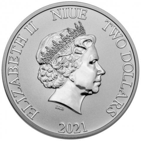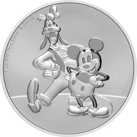 Il rovescio della moneta raffigura Topolino e Pippo sorridenti con le mani sui fianchi. In alto a sinistra l'indicazione del metallo, titolo e logo Disney. Il diritto mostra il ritratto della Regina Elisabetta II e le iscrizioni "DUE DOLLARI", "ELIZABETH II", "2021" e "NIUE".