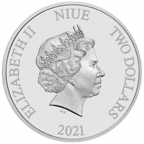 Prima emissione della serie DC Comics e dedicata a Batman. La moneta mostra sul rovescio il leggendario supereroe con l'inconfondibile costume da pipistrello. Sullo sfondo sono visibili i grattacieli di Gotham City e il "Bat-Segnale". Il diritto mostra il ritratto della Regina Elisabetta II e le iscrizioni "DUE DOLLARI", "ELIZABETH II", "2021" e "NIUE".