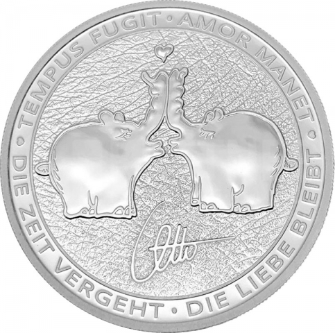 L'Ottifant è un elefante ideato e disegnato in stile comico dal tedesco Otto Waalkes. La moneta propone sul rovescio la popolare ottomotiva di due ottimisti che si baciano.