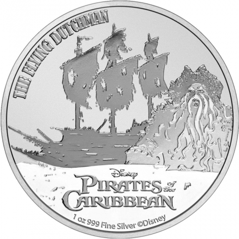 Seconda emissione della serie Pirati dei Caraibi e dedicata alla nave pirata The Flying Dutchman. Conosciuta con il nome de l'Olandese volante, era comandata dal capitano Davy Jones nella fortunata serie di film "Pirati dei Caraibi 2". La moneta mostra sul rovescio l'immagine della nave e una raffigurazione stilizzata dell'antagonista Davy Jones. Le iscrizioni THE FLYING DUTCHMAN, PIRATES OF THE CARIBBEAN, 1 oz 999 Fine Silver e il logo Disney completano il disegno. Il diritto mostra il ritratto della Regina Elisabetta II e le iscrizioni DUE DOLLARI, ELIZABETH II, 2021 e NIUE.