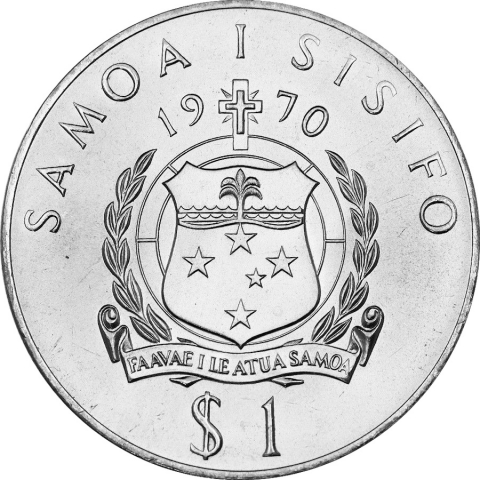 Moneta commemorativa coniata per la visita del Pontefice nell'isola nel 1970. Mostra il profilo di papa Paolo VI tra lo stemma pontificio e un isolotto con le palme. Moneta perfettamente conservata, a nostro parere FDC.