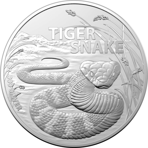 Quinta emissione della serie "Australia's Most Dangerous" e dedicata al Serpente Tigre, pericolosissimo rettile con un veleno composto non solo da neurotossine, ma anche da coagulanti, emolisine e miotossine. La moneta lo raffigura mentre striscia nel terreno tra gli arbusti tipici dell' Australia meridionale e della Tasmania.