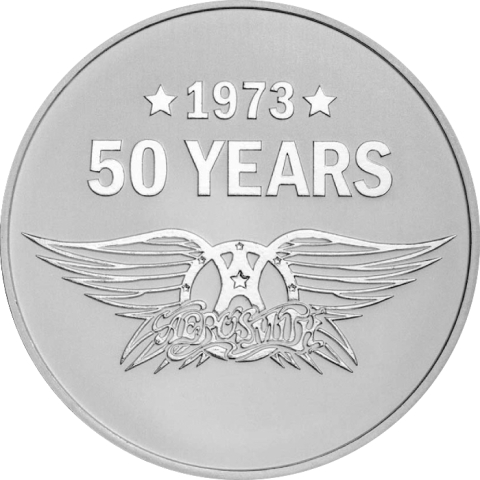 Moneta commemorativa che rende omaggio al 50° anniversario degli Aerosmith, una delle rock band più influenti della storia della musica mondiale. La moneta mostra l'immagine e il logo alato della band, oltre la scritta 50 Years.