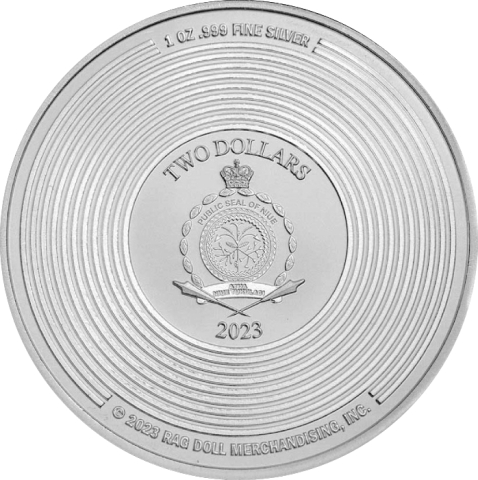 Moneta commemorativa che rende omaggio al 50° anniversario degli Aerosmith, una delle rock band più influenti della storia della musica mondiale. La moneta mostra l'immagine e il logo alato della band, oltre la scritta 50 Years; sul retro lo stemma di Niue al centro e la data del 2023 in basso. Sui bordi vengono indicati il peso, la purezza, il contenuto di metallo e il valore nominale.