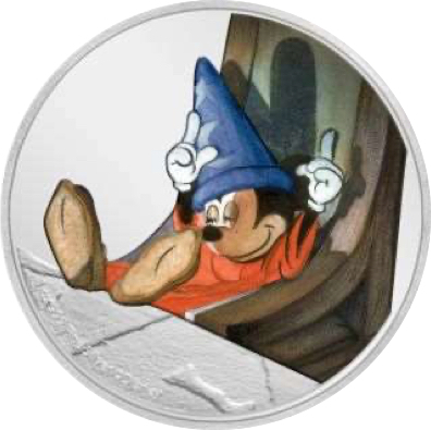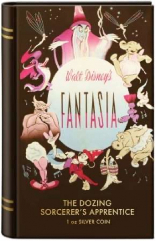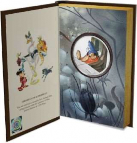 Per celebrare l'ottantesimo anniversario di Fantasia della Disney del 1940, la zecca della Nuova Zelanda ha presentato questa moneta d'argento che raffigura una scena del film The Sorcerer's Apprentice. In questa immagine tratta da The Sorcerer's Apprentice, Topolino viene mostrato mentre sonnecchia su una sedia dopo aver messo la scopa al lavoro al posto suo.Il dritto presenta l'effigie di Ian Rank-Broadley di Sua Maestà la Regina Elisabetta II ed ha corso legale a Niue. Un Certificato di Autenticità è stampato a fianco della moneta e contiene il numero di serie unico. La moneta è alloggiata all'interno della confezione a forma di libro. Le illustrazioni tratte dai deliziosi poster del film adornano la confezione sia all'interno che all'esterno per completare la moneta.