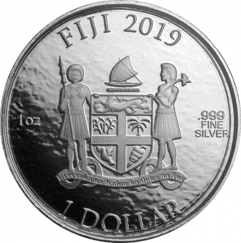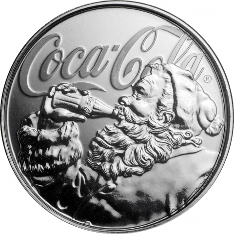 Babbo Natale e la Coca-Cola sono icone della cultura pop globale che sono state intrecciate nella pubblicità delle vacanze dal 1920, tanto che la Coca-Cola ha effettivamente contribuito a formare l'immagine di Babbo Natale come lo immaginiamo oggi. L'immagine originale è stata dipinta dall'artista Fred Mizen nel 1930 per una pubblicità della Coca-Cola e raffigurava Babbo Natale in una folla che beveva una bottiglia di Coca-Cola. Sul rovescio, è visibile lo stemma delle Figi su uno sfondo strutturato di neve soffice, alla deriva, un cenno alla poesia 'Twas the Night Before Christmas (A Visit from St. Nicholas): Inclinando la moneta avanti e indietro nella luce, si intravede il verso della poesia: "La luna, sul petto della neve appena caduta, dava un lustro di mezzogiorno agli oggetti sottostanti. La moneta è inserita in una confezione di sicurezza e autenticazione brevettata Certi-Lock® di Scottsdale Mint.