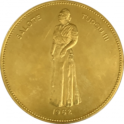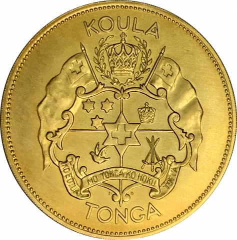 Moneta in oro che mostra la Regina di Tonga Salote Tupou III in piedi volta a sinistra tra le parole Salote e Tupou III, in basso la data di emissione. Sul diritto lo stemma dell'isola con il motto KO E ʻOTUA MO TONGA KO HOKUu TOFIʻA (Dio e Tonga sono la mia eredità) posto tra le parole Koula e Tonga.