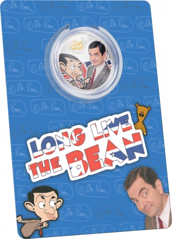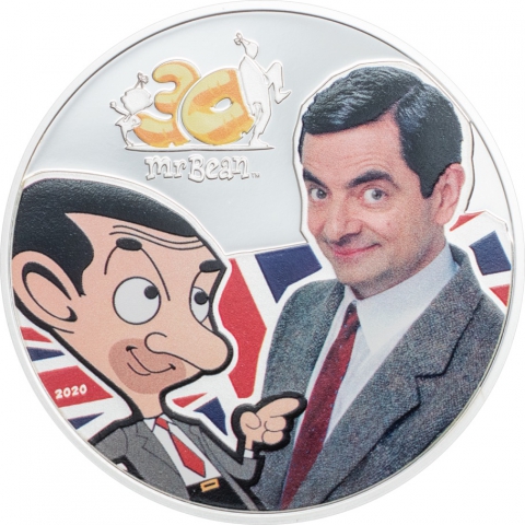 Il 2020 segna il 30° anniversario del mitico Mr Bean. Descritto dal suo creatore come "un bambino nel corpo di un uomo adulto", è diventato il preferito di milioni di persone in tutto il mondo. Le sue gag umoristiche sono evidenziate dalla sua goffaggine e dalla sua capacità di creare un caos imbarazzante intorno a lui. È chiaramente una superstar dei social media con 90 milioni di seguaci su Facebook. I film di Mr. Bean sono stati trasmessi in 195 territori e hanno generato 6,5 miliardi di visualizzazioni su YouTube! Questa simpatica d'argento da un'oncia mostra Mr. Bean nelle sue due immagini più note. Il sorriso eccentrico immediatamente riconoscibile, abbinato alla giacca di tweed e alla cravatta rossa attillata, ti farà sorridere e ti farà tornare in mente le sue esilaranti interpretazioni. Nella moneta, dietro Mr. Bean è visibile la bandiera britannica e sotto il logo del 30° Anniversario. Sul diritto è rappresentata la Regina Elisaebetta II ed il valore nominale da 5 dollari.