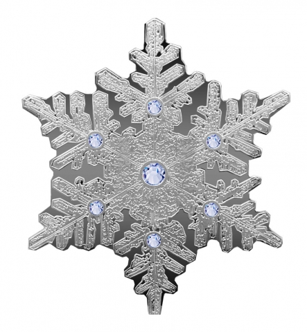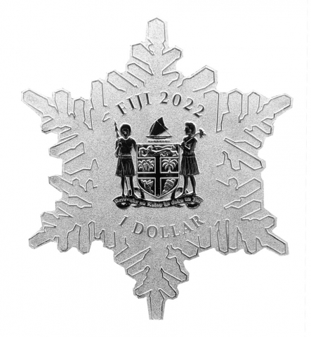 Moneta in argento puro e a corso legale denominata Snowflake. Coniata in argento puro, la moneta a forma di fiocco di neve cattura le linee intricate di un fiocco di neve congelato. L'argento scintillante è semplicemente stupefacente. Ciò che aiuta veramente questa moneta a catturare la bellezza senza tempo di un fiocco di neve fresco è l'aggiunta di sette cristalli Swarovski montati sulla superficie della moneta. Le qualità prismatiche di ogni cristallo catturano la luce in modi diversi a seconda di come si gira la moneta tra le mani. Il diritto propone al centro il logo ufficiale delle Isole fiji, il valore nominale che da corso legale alla moneta, peso, titolo e anno di emissione.