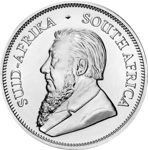 Decima emissione del Krugerrand d'argento. Il Krugerrand è stata la prima moneta bullion della storia della numismatica mondiale ed una delle più conosciute e acquistate, il suo nome deriva da Kruger (presidente Paul Kruger) e Rand (unità monetaria sudafricana).