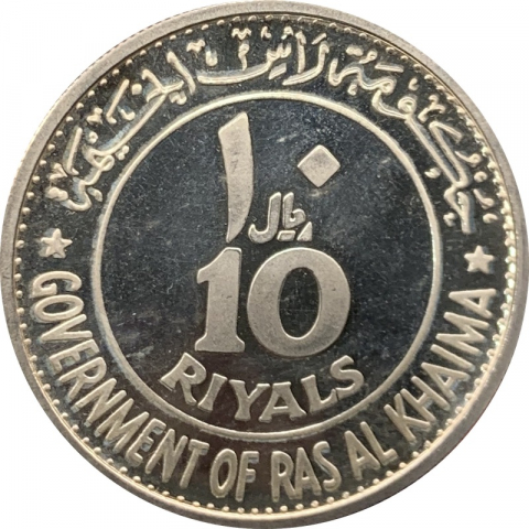 Moneta commemorativa in argento dedicata al centenario di Roma capitale d'Italia. Mostra sul diritto l'imperatore Augusto posto tra la scritta Roma e le date 1870 - 1970. Sul rovescio il valore nominale nella lingua araba ريـَـال ١٠ e inglese 10 Riyals. Attorno la legenda in arabo حُكـومَة رأس الخـــيمة ed inglese Government of Ras Al Khaimah.