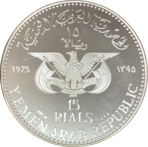 Moneta commemorativa in argento di largo modulo dedicata alla città di Gerusalemme, capitale proclamata dello Stato di Palestina. Mostra sul diritto il valore nominale sormontato dallo stemma yemenita posto tra le date 1975 e ١٣٩٥. Attorno la scritte in arabo الجمهورية العربية اليمنية ed inglese YEMEN ARAB REPUBLIC. Sul rovescio una veduta della città con la cupola della moschea in primo piano. In basso la scritta in inglese ARAB JERUSALEM ed in arabo القدس العربية.