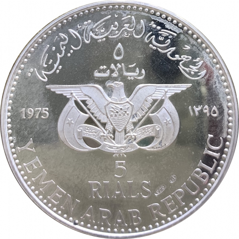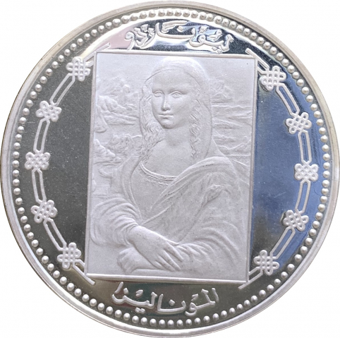 Moneta commemorativa in argento dedicata alla Mona Lisa o Gioconda. Mostra sul diritto il valore nominale sormontato dallo stemma yemenita posto tra le date 1975 e ١٣٩٥. Attorno la scritte in arabo الجمهورية العربية اليمنية ed inglese YEMEN ARAB REPUBLIC. Sul rovescio il celebre dipinto opera di Leonardo da Vinci. In basso la scritta in arabo الـمونـاليـزا.