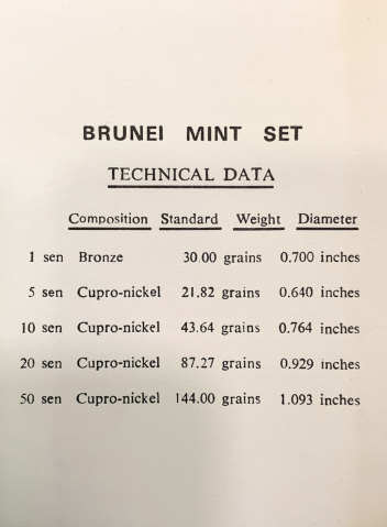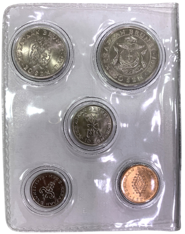 Set comprendente 5 monete emesse nel 1978 dal Brunei per un valore complessivo di 86 Sen. Astuccio in perfette condizioni e corredato di certificato di autenticità.