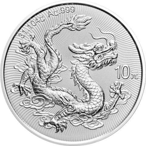 Prima emissione in argento della serie Chinese dragon. L'immagine del drago si ispira al Drago dorato della dinastia Tang e al Muro dei Nove Draghi della Città Proibita di Pechino. Sul verso opposto è visibile la Grande Muraglia cinese, lunga e tortuosa.