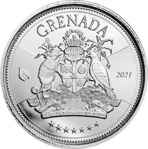 La moneta è inserita nel programma numismatico EC8, le 8 isole caraibiche e raffigura lo stemma di Grenada, con un armadillo e una colomba di Grenada che ne sorreggono lo scudo. Sia il dritto che il rovescio sono caratterizzati da linee radiali ondulate, che rendono le monete più difficili da duplicare e offrono una misura di sicurezza. Il diritto raffigura il profilo della Regina Elisabetta II posto entro due arbusti.
