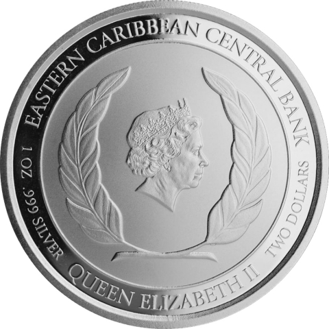 Moneta in argento inserita nella terza serie EC8 prodotta dalla Scottsdale mint in collaborazione con la Eastern Caribbean Central Bank. Mostra sul rovescio una nave pirata del XVIII secolo a vele spiegate in alto mare. A completare la scena, sono visibili dense nuvole di fumo mentre si riversano dalle bocche da fuoco della nave.